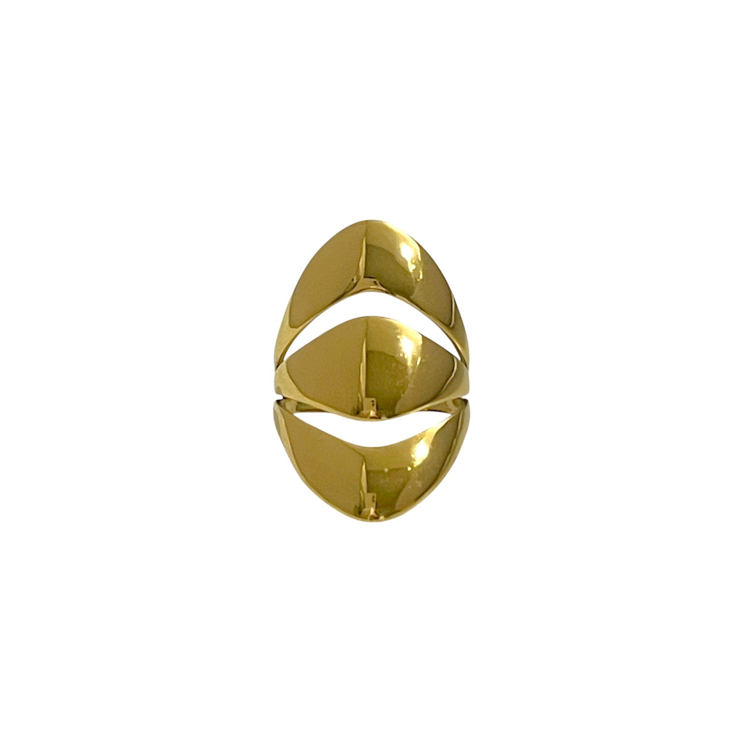 Anillo fabricado en acero inoxidable hipoalergénico. Disponible en tono dorado, su diseño ajustable permite que se adapte a cualquier dedo. Su diseño atemporal lo convierte en el accesorio perfecto tanto para el día a día como para ocasiones especiales.