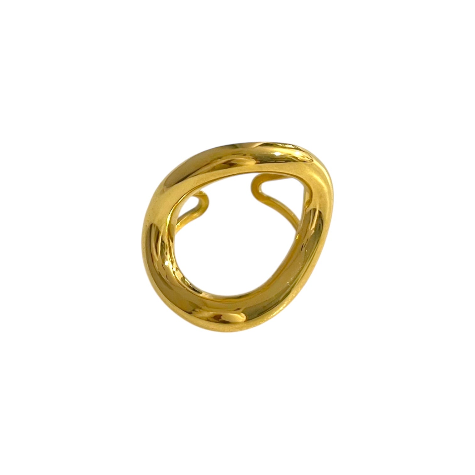 Anillo fabricado en acero inoxidable hipoalergénico. Disponible en tono dorado, su diseño ajustable permite que se adapte a cualquier dedo. Su diseño atemporal lo convierte en el accesorio perfecto tanto para el día a día como para ocasiones especiales.