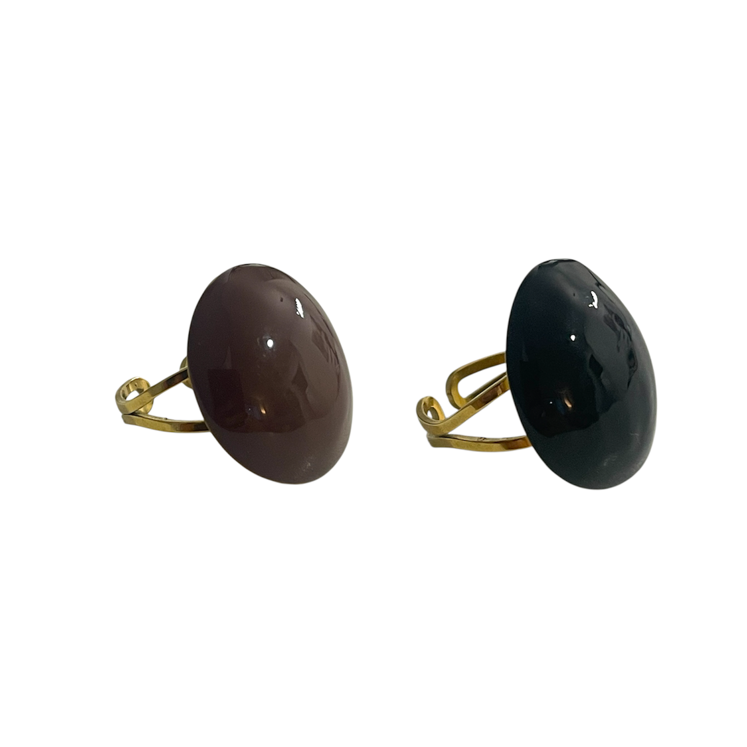 Anillo hipoalergénico de acero inoxidable en dorado es ajustable y está disponible en negro o marrón. Un accesorio versátil y elegante, ideal para cualquier ocasión. Puedes combinarlo con los Pendientes Fe.