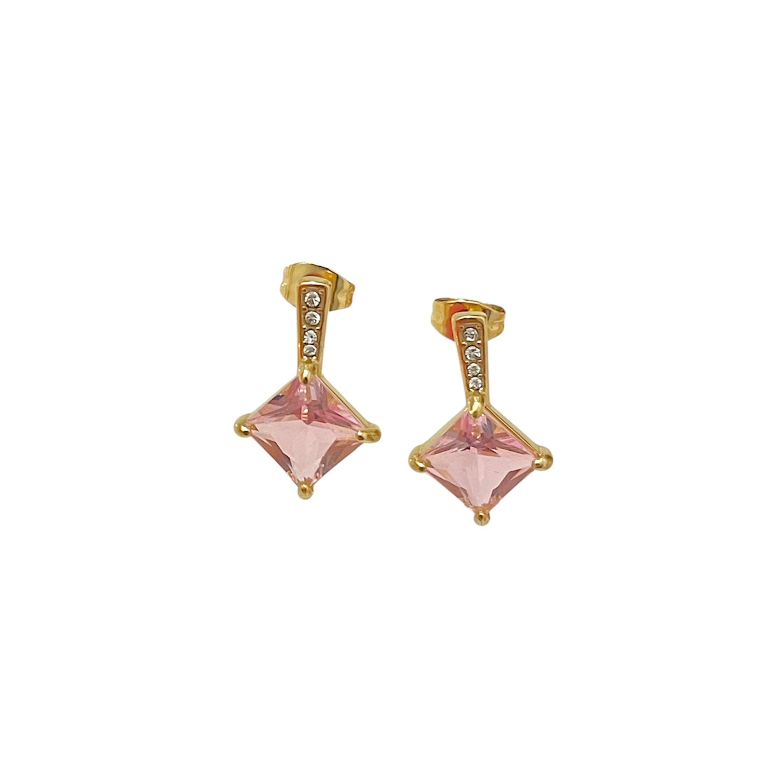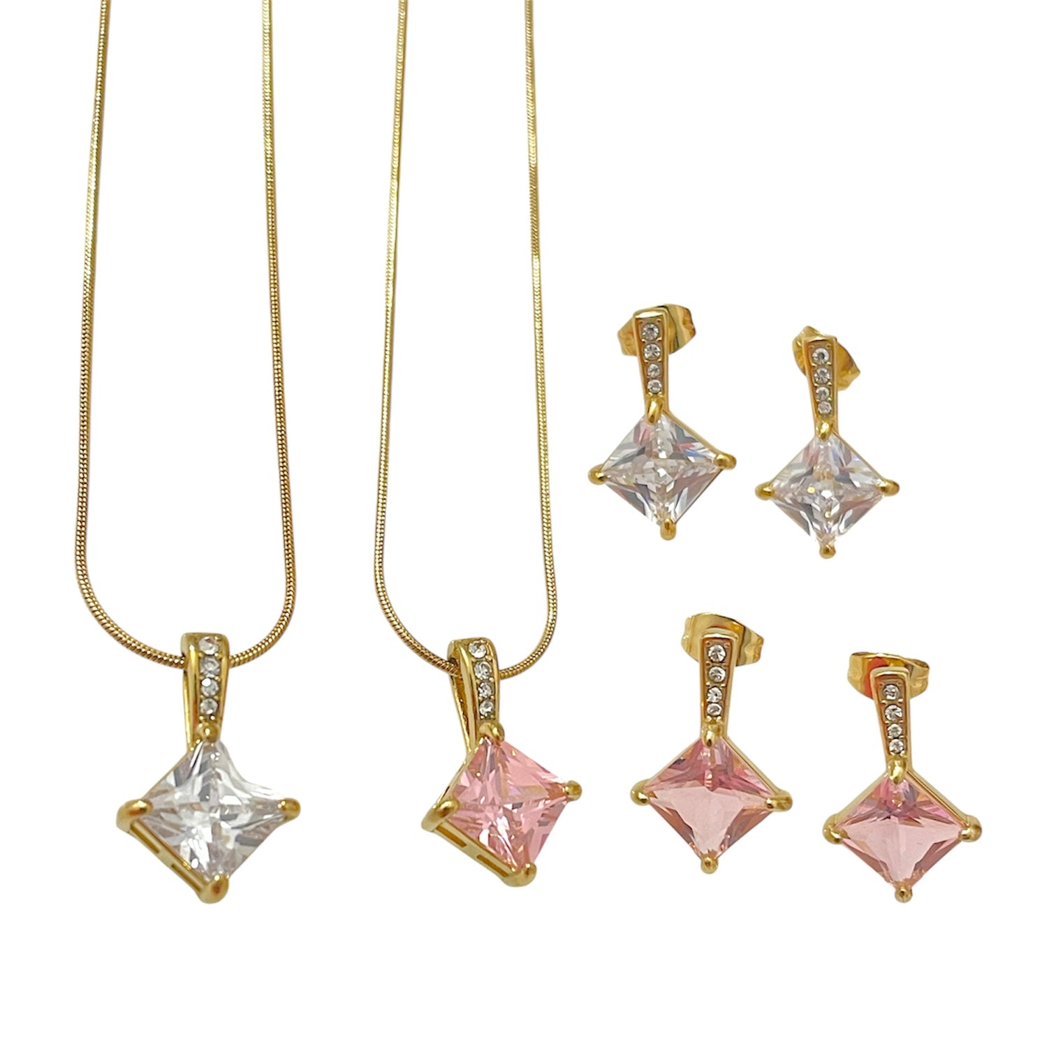 Pendientes y colgantes en zirconitas blancas y rosa.