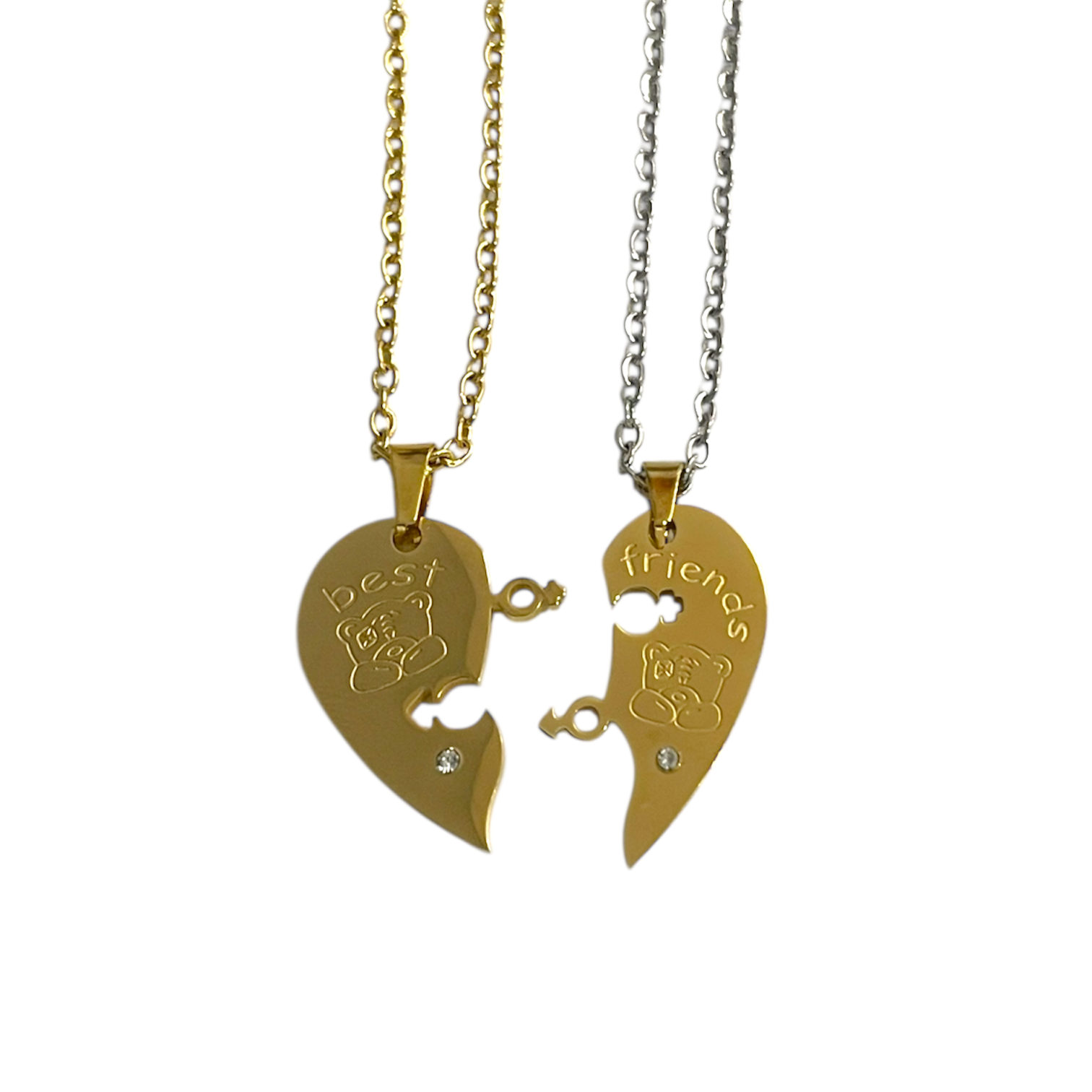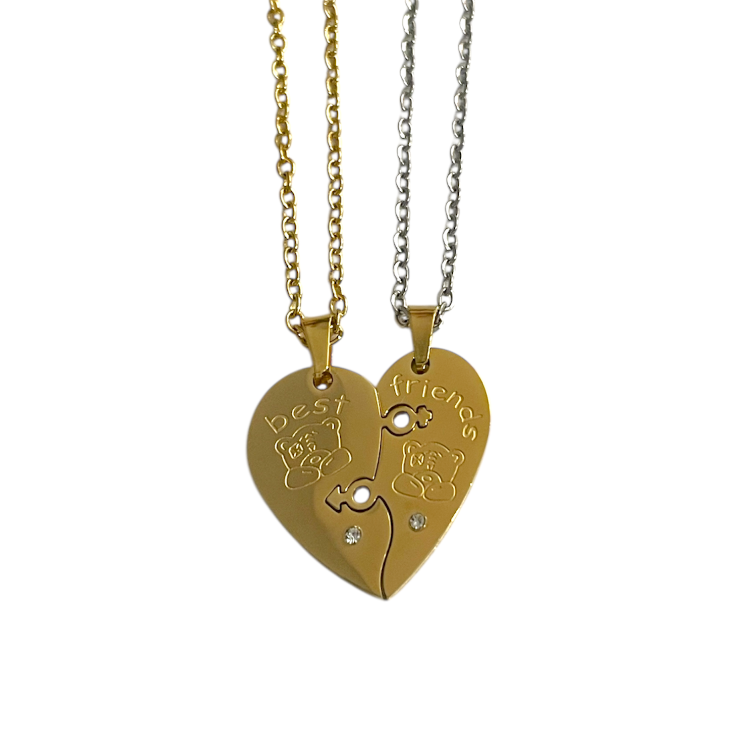 Collar de acero inoxidable para compartir con tu mejor amigo o amiga. Un detalle especial para amistades que quieren llevar su conexión siempre cerca. Resistente, duradero y apto para uso diario.