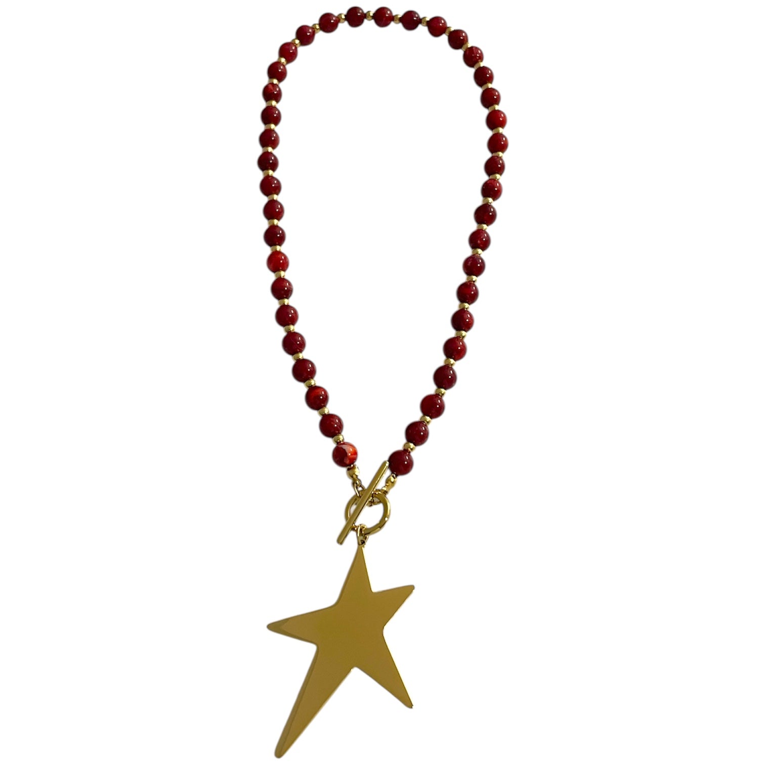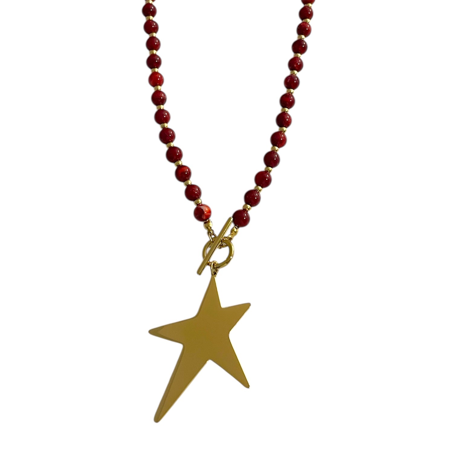 Collar hipoalergénico de acero inoxidable con cuentas y colgante de estrella. Su diseño moderno y medida de 45 cm lo hacen el complemento ideal para esta temporada.