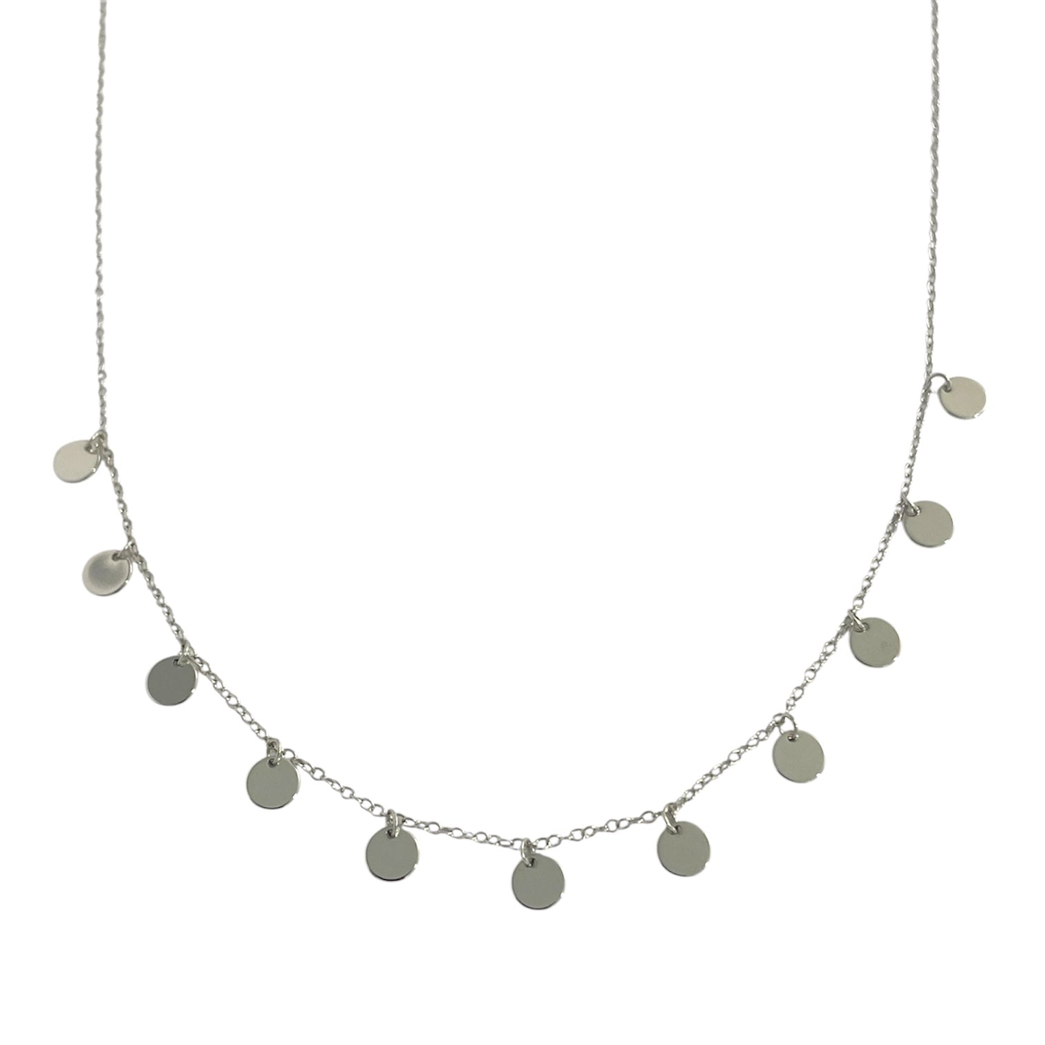 Este collar está elaborado en Plata de Ley 925 y disponible también con baño en oro. Su diseño está formado de pequeñas placas, que aportan brillo y sencillez a cualquier look. Con una longitud de 38 cm más 5 cm de alargo, es una pieza versátil que se adapta a distintos estilos y ocasiones.