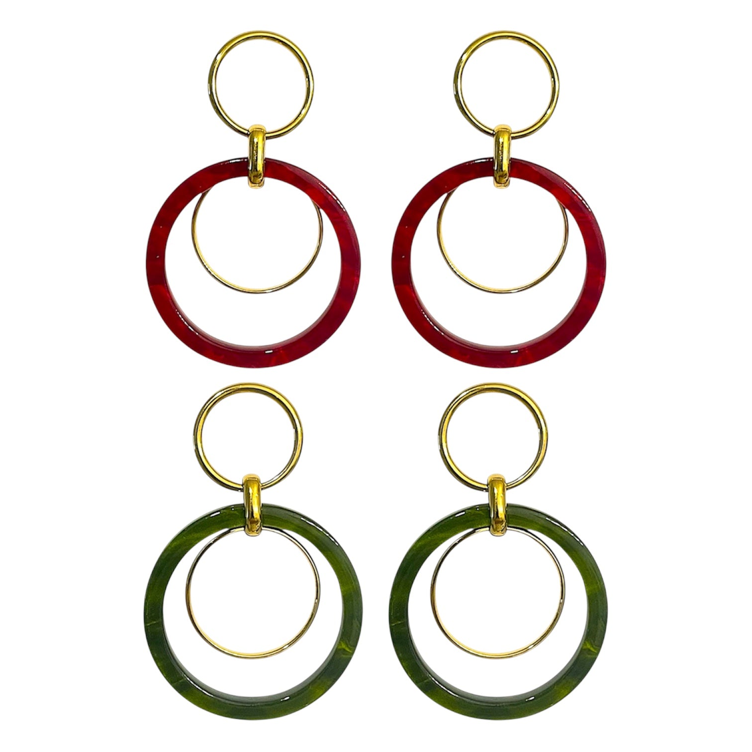 Estos pendientes hipoalergénicos en forma circular. Fabricados en acero inoxidable, son resistentes y cómodos para llevarlos con cualquier look. Disponibles en color verde y color burdeos.