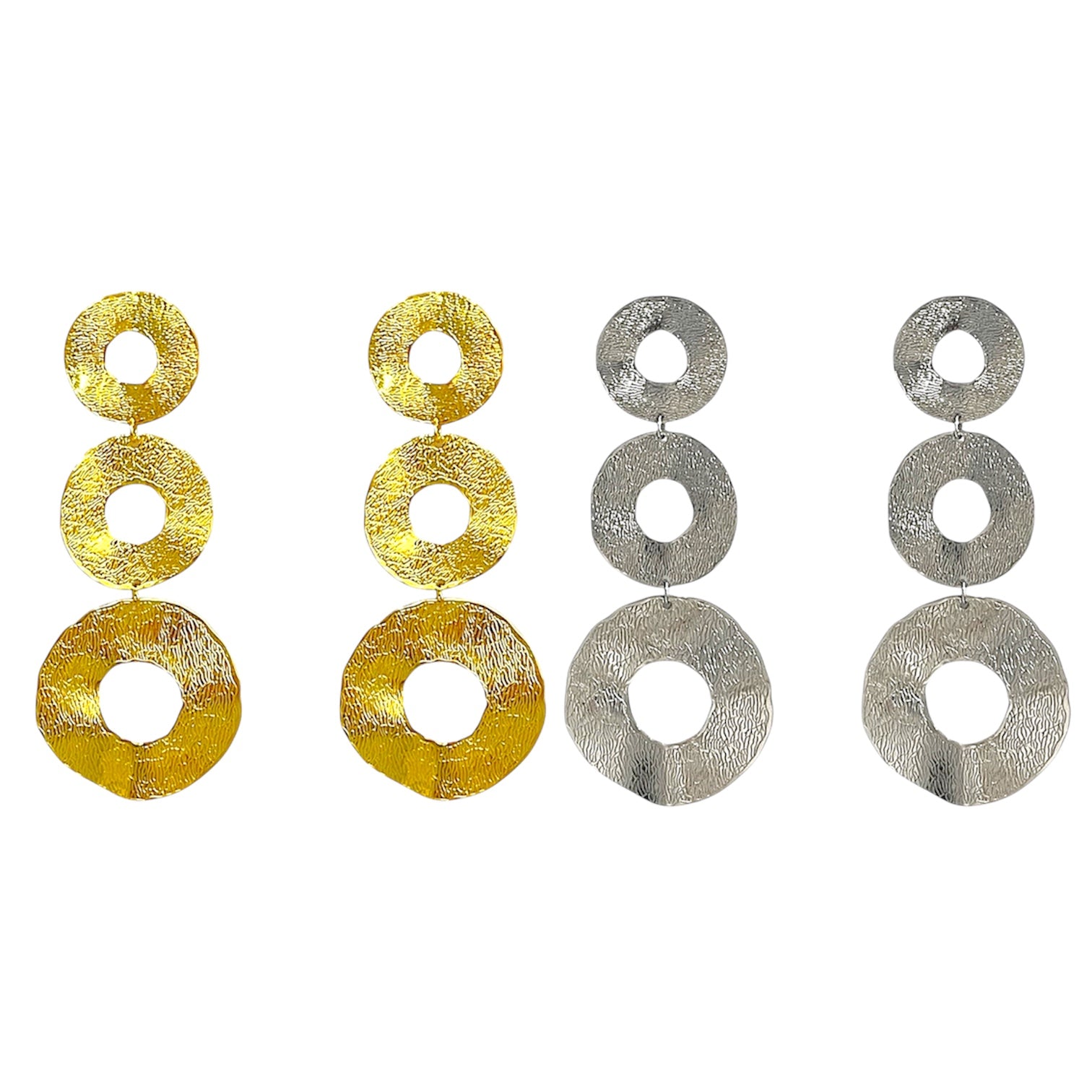 Pendientes largos fabricados en acero inoxidable hipoalergénico. Disponibles en tono plateado o dorado, su diseño atemporal los convierte en el accesorio perfecto tanto para el día a día como para ocasiones especiales.