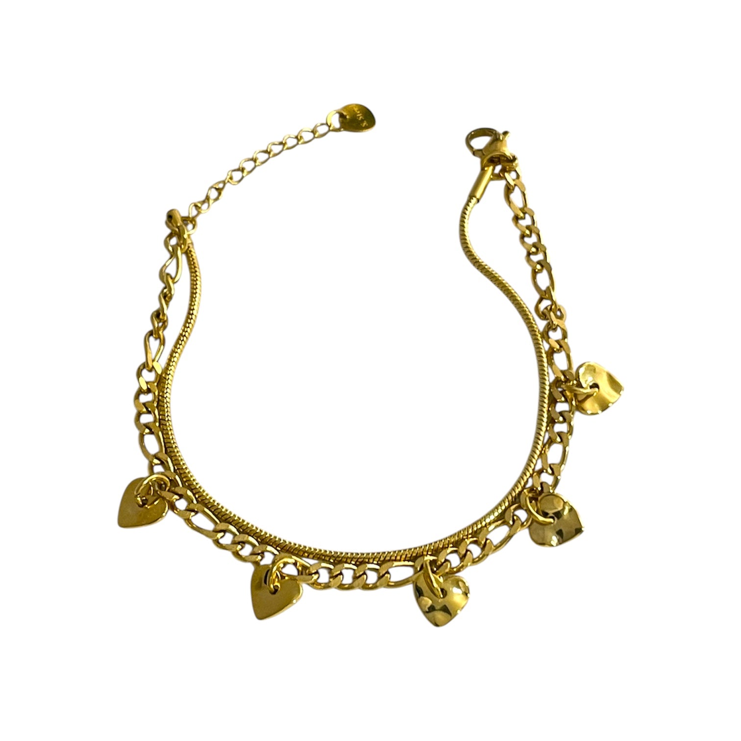 Pulsera hipoalergénica de acero inoxidable en tono dorado, con medida ajustable de 17 cm + 5 cm. Elegantes, resistentes y perfectas para combinar con otros accesorios de la marca.