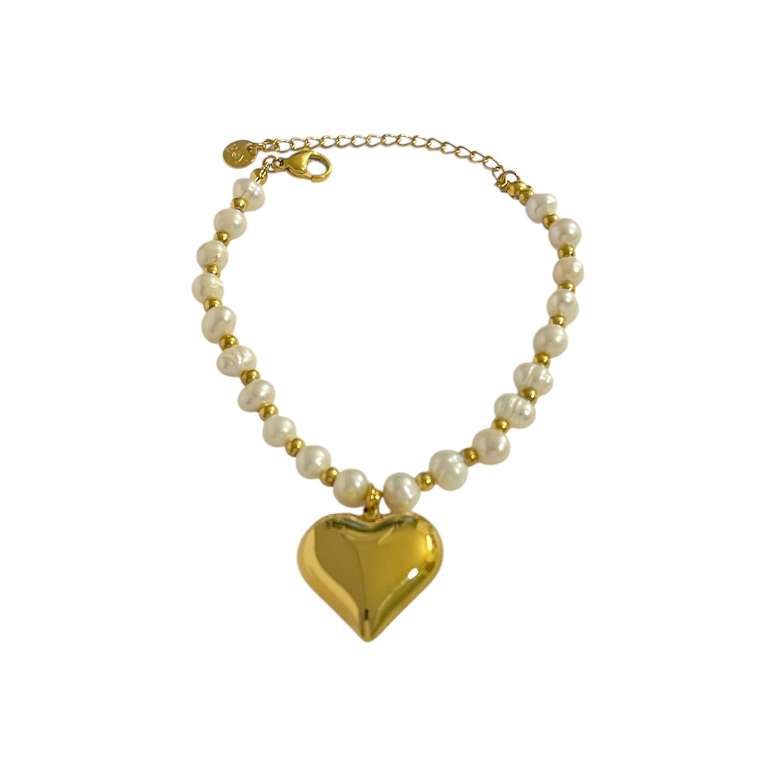 Pulsera que combina la resistencia del acero inoxidable con la elegancia atemporal de las perlas naturales. Su diseño se completa con un encantador charm en forma de corazón, que aporta un toque romántico y especial.