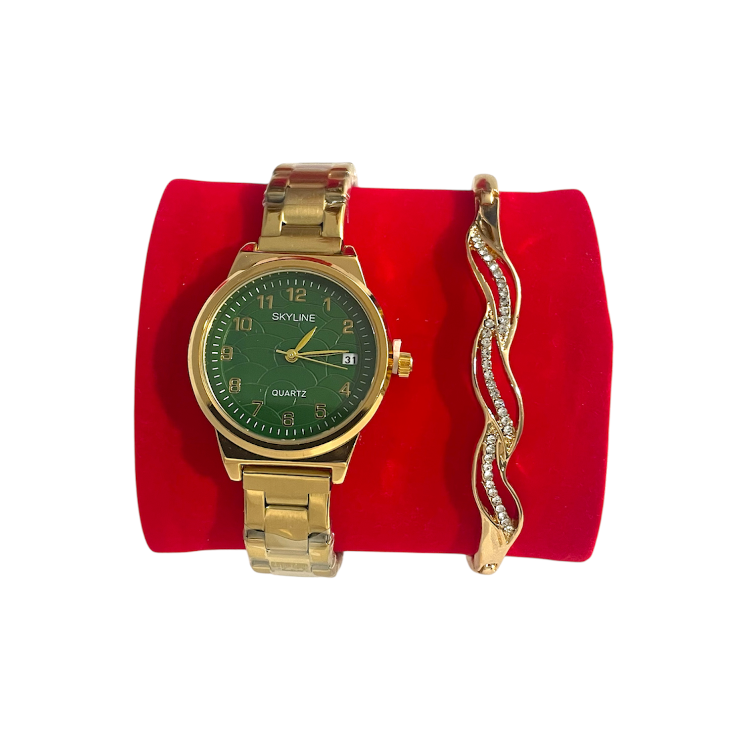 Reloj hipoalergénico de acero inoxidable, diseñado para quienes buscan estilo y comodidad en cada detalle. Incluye una pulsera a juego en rodio, creando una combinación moderna que realza cualquier look. Además, se presenta en un packaging premium exclusivo, pensado para proteger tus accesorios, ideal también para regalo.